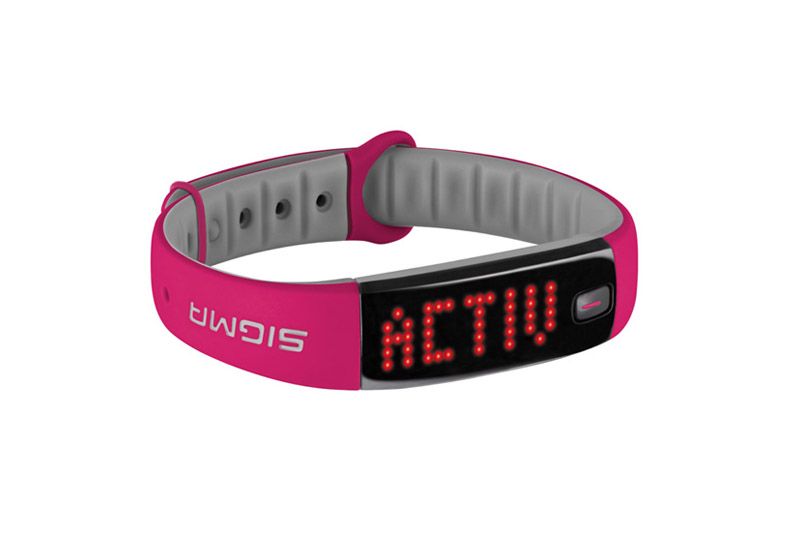 • Фитнес-браслет Sigma Activo отображает количество пройденных шагов, сожженных калорий, показывает уровень дневной активности и сохраняет статистику на смартфон с помощью Bluetooth Smart.